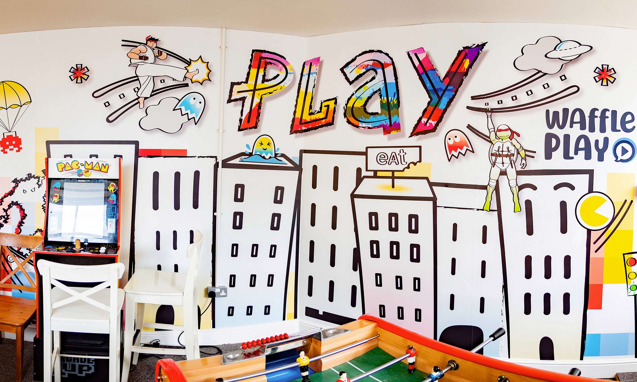 This challenge was to create a graphic for a 'Play' area housing some old-school gaming machines.